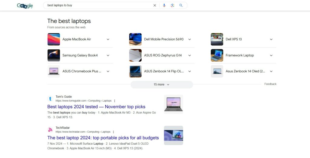 As an extra tip, check out the top-ranking pages on Google to find out what the user intent is for your keyword. For instance, searching “best laptops to buy” will likely yield comparison articles and reviews, letting you know that the keyword falls under commercial intent.