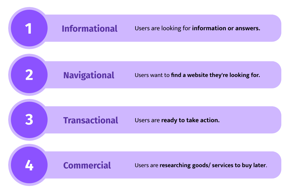 User intent is the reason behind what people search for on Google, and is a key part of SEO writing. There are four main types that you should know: