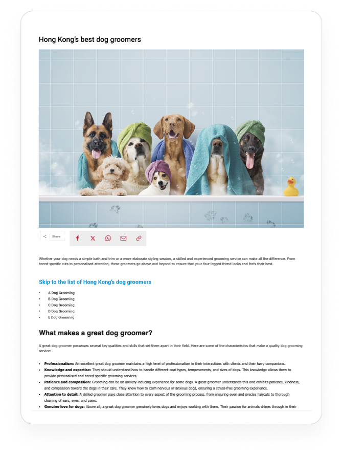 E-E-A-T 是 Google 評估內容的四大標準:經驗、專業知識、權威性與可信度。Gemini 特別重視這些元素來篩選可靠資訊,我們會幫您突顯品牌的專業優勢,強化信任感。